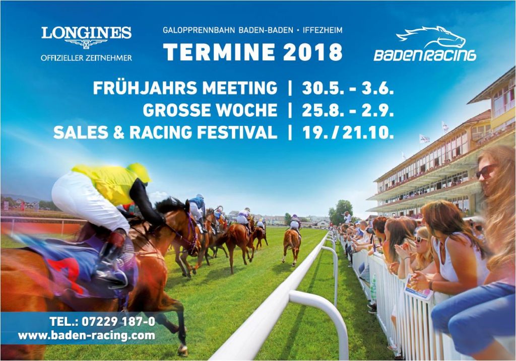 Auf der Galopprennbahn Baden-Baden · Iffezheim werden seit 1858 Rennen gelaufen, seit 2004 gibt es drei Meetings mit unterschiedlichen Charakter im Jahr: Das FRÜHJAHRS-MEETING Ende Mai, die GROSSE WOCHE Ende August und das SALES & RACING FESTIVAL Mitte Oktober. Alle drei Meetings werden jeweils von einer Auktion der BBAG begleitet.